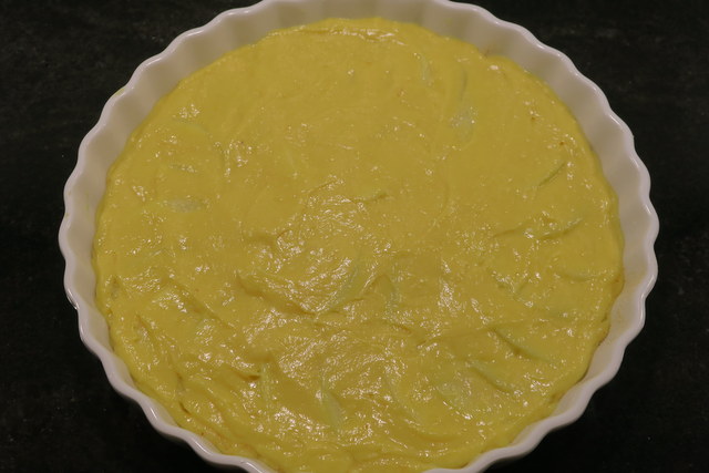 Der Kuchen ist mit der zweiten Teighälfte zugedeckt und wartet auf den Ofen.